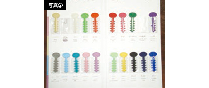 ローフリクション以外のブラケットの場合、クイックスティックを使用してブラケットにアーチワイヤーをセットします。[写真②]このクイックスティックはカラーガイドにあるように目立ちにくい色から可愛らしいキュートな色など、多色ご用意しております。来院ごとに交換しますので良かったら色々楽しんでみて下さいね。パステルカラーが人気で最近新しく “ミント“ が仲間入りしましたよ。治療の段階でクイックスティックが使えず、パワーチェーンが必要になる時もあります。申し訳ありませんが、パワーチェーンの色はクリアのみになりますので色を楽しむことが出来なくなります。