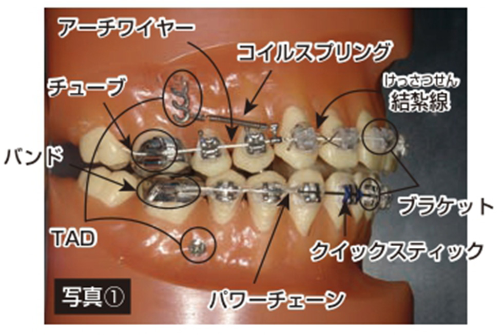 ワイヤー矯正している方はお口の中にどんな装置が入っているかみてみましょう。[写真①]