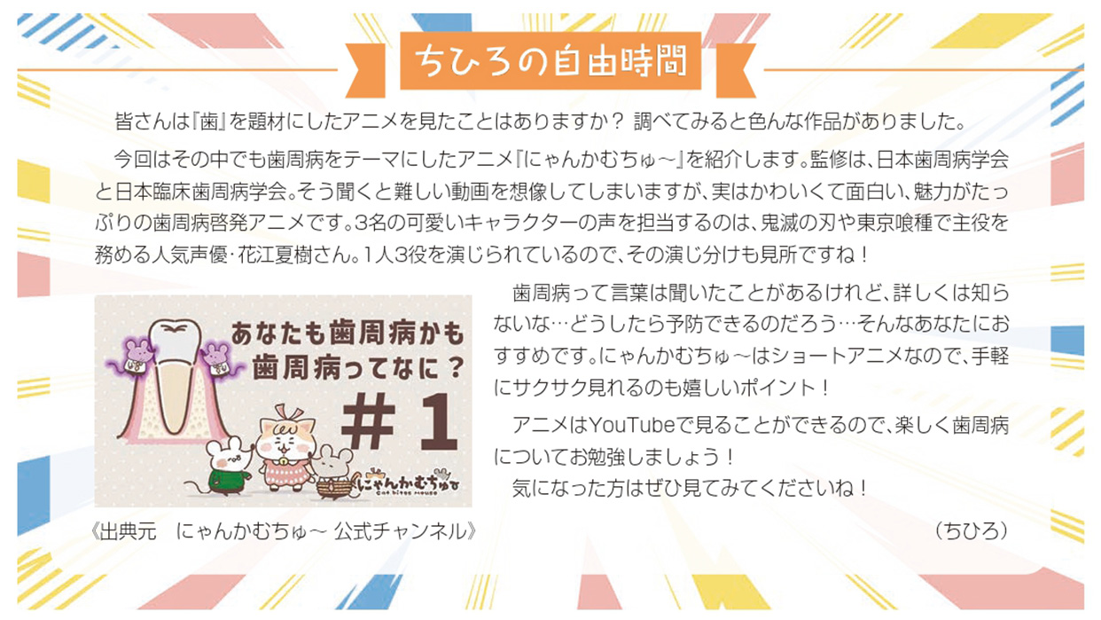 4 月からスタッフの一員となりました歯科衛生士の細川愛海です。3 月に歯科衛生士専門学校を卒業したばかりでまだまだ未熟ではありますが、日々沢山学び、歯科衛生士として少しでも患者様のお役に立てるよう努力していきます。お悩みなどがありましたらいつでも相談してください。